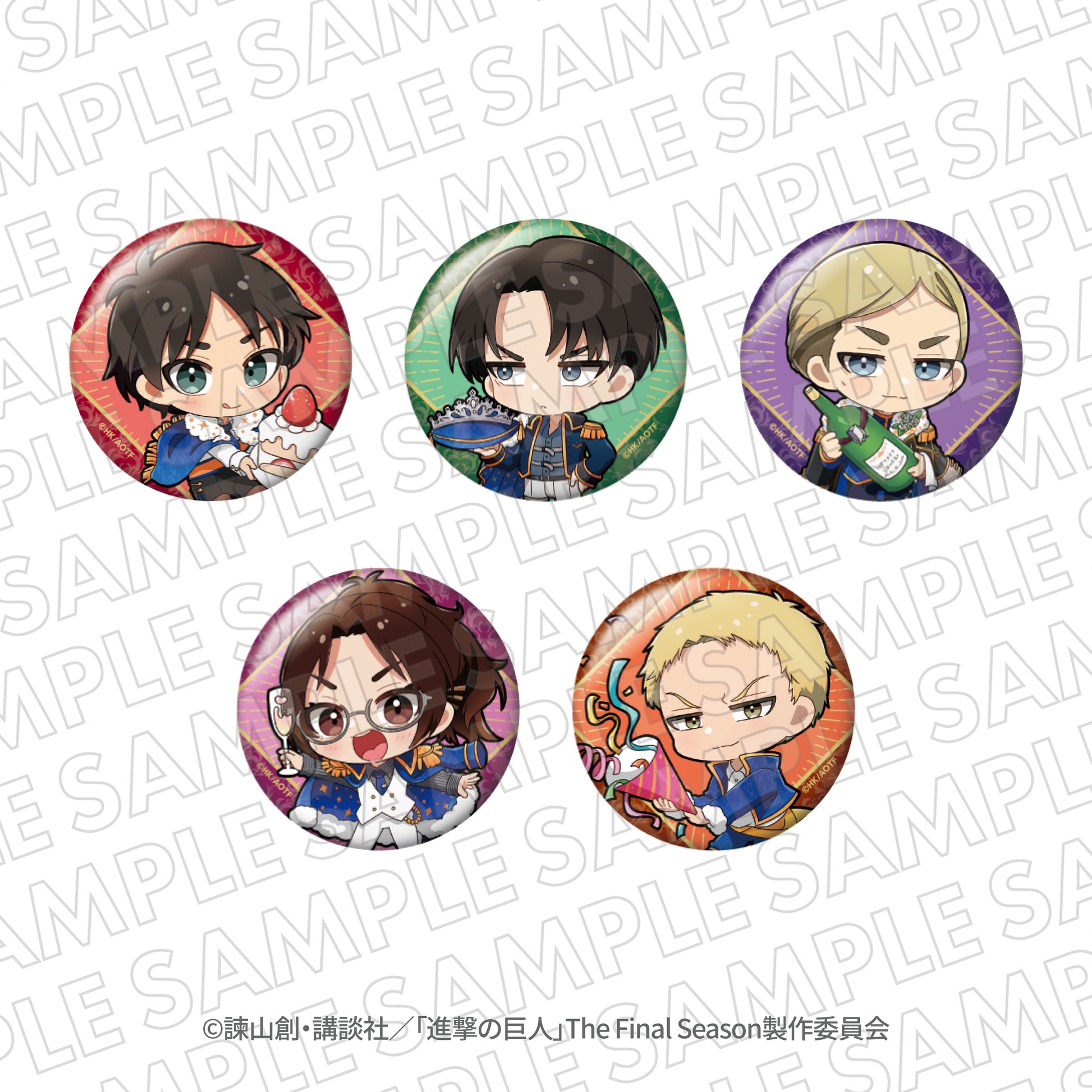 『進撃の巨人』エスクリコラボ第三弾 ミニキャラホログラム缶バッジA(エレン、リヴァイ、エルヴィン、ハンジ、ライナー) 全5種トレーディング